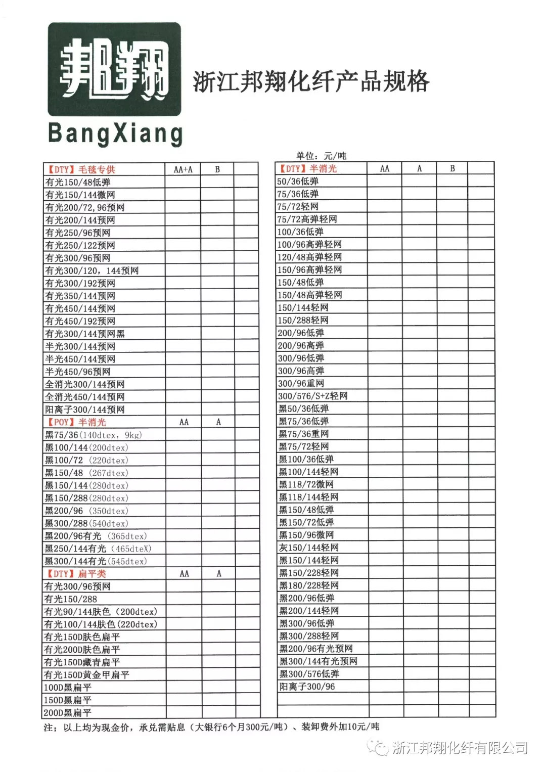 Tabla de especificaciones de producto de Zhejiang Bangxiang Holding Group-LISTA DE PRODUCTOS